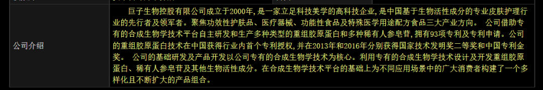 值得注意的是,公司上市时被市场定义为“重组胶原蛋白第一股”,从其介绍上看更像一家“生物科技公司”。