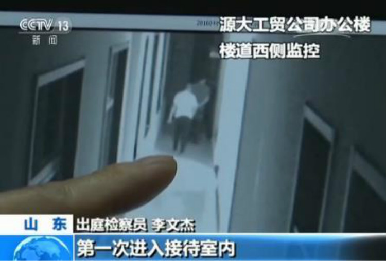 出庭检察员 李文杰:此时通过他们的对话可以知道苏银霞、于欢二人想出接待室,但是没有出去,就是因为要债一方阻拦着不让出去。要债人一方始终是站在接待室门口附近,而苏银霞、于欢母子始终是站在要债人一方的南边,也就是远离门的方向。