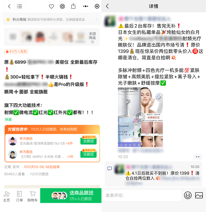 而在此之前的72小时,整个行业完成了新规落地前的最后一轮疯狂清仓:原价6899元的品牌美容仪在社群喊出300元的地板价,原价4000元以上的网红射频仪被商家以 “明天就永久下架”为由甩卖到三位数。