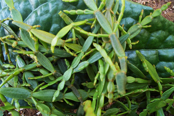 据百度百科介绍,螃蟹脚属灌木植物,其高在0.5至0.7米,茎基部近圆柱状,枝和小枝均扁平;枝交叉对生或二歧地分枝,节间长2至4厘米,宽4至8毫米,干后边缘肥厚,纵肋5至7条,明显。叶退化呈鳞片状。