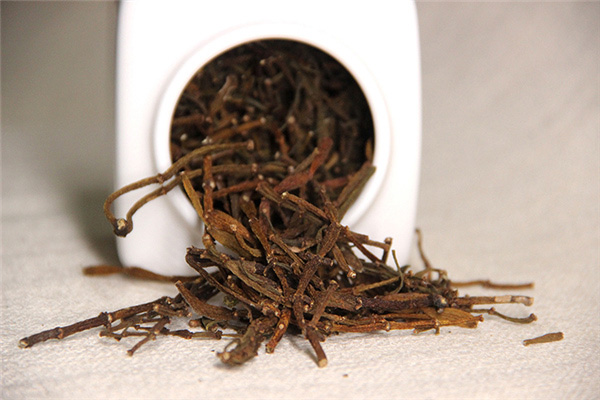 在这里需要特别强调的是,就目前在普洱茶行业中走俏茶市的螃蟹脚,既不是寄生于枫香树上的螃蟹脚,也不是寄生于油桐树上的螃蟹脚,而特指普遍寄生于树龄较大古茶树上的螃蟹脚——这种寄生于茶树上的螃蟹脚,也被部分人士统称为螃蟹脚普洱茶,其形卷曲伸展,细分出若干节,似扁杆灯芯草,长3至4寸,节短而中实。闻之有浓烈的菌藻味和茶香味,这便是古书《本草纲目》中所言的“形如蚱蜢脚者佳”的螃蟹脚了。这类螃蟹脚经采摘晒干后呈棕黄色,晒干后既可冲泡饮用。