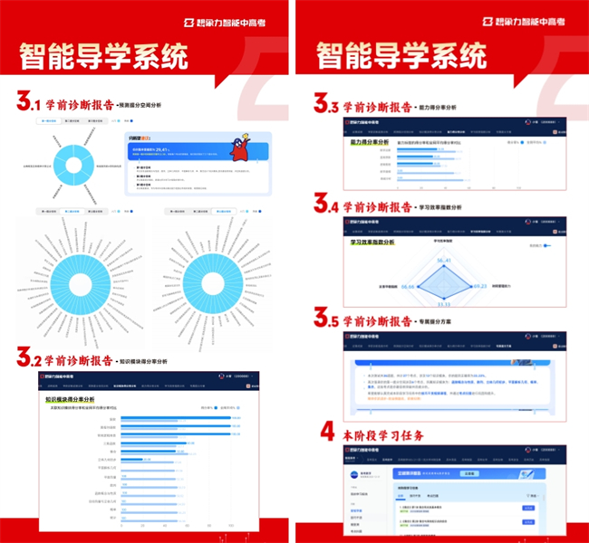 中高考竞争日趋激烈,传统备考模式中“盲目刷题、低效内耗、痛点模糊”等问题,成为阻碍学子冲刺高分的核心瓶颈。想象力智能中高考打造行业首创“智能测评+智能报告+智能学习方案”为一体的智能导学系统,构筑技术领先 + 服务闭环的双重竞争力,打造差异化品牌优势,牢牢占据中高考智能提分赛道制高点。