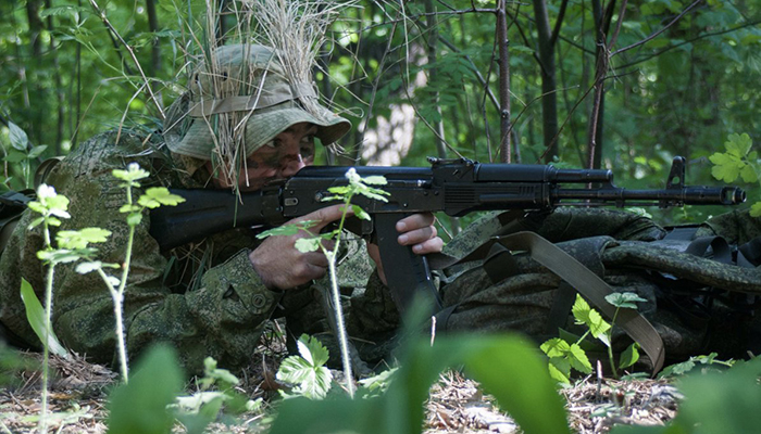 1. Spetsnaz使用的标准武器是5.45毫米AK-74步枪中的一款。图中所示的AK-74M是大部分俄罗斯陆军士兵使用的标准版本,重约8磅(约合3.6公斤),弹夹容量30发。