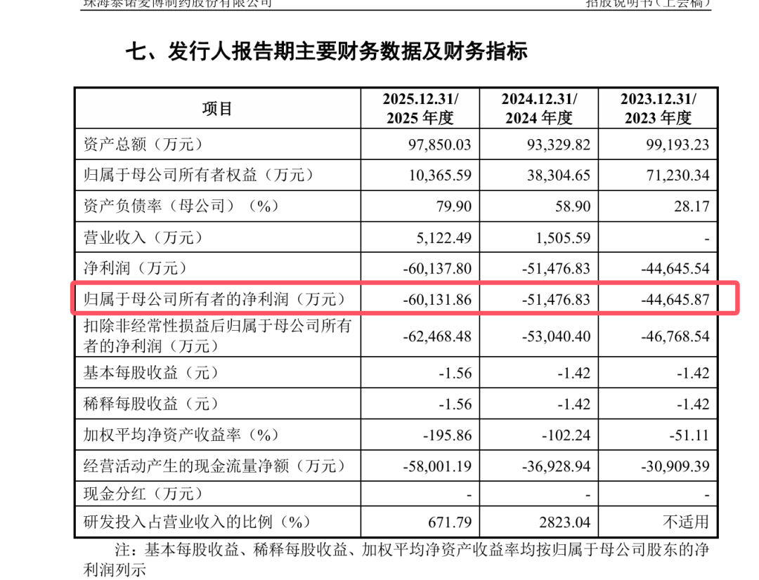 公司在高强度投入下,亏损规模不断扩大。2023至2025年,泰诺麦博累计亏损已超16亿元,盈利前景与商业化效率仍面临严峻考验。