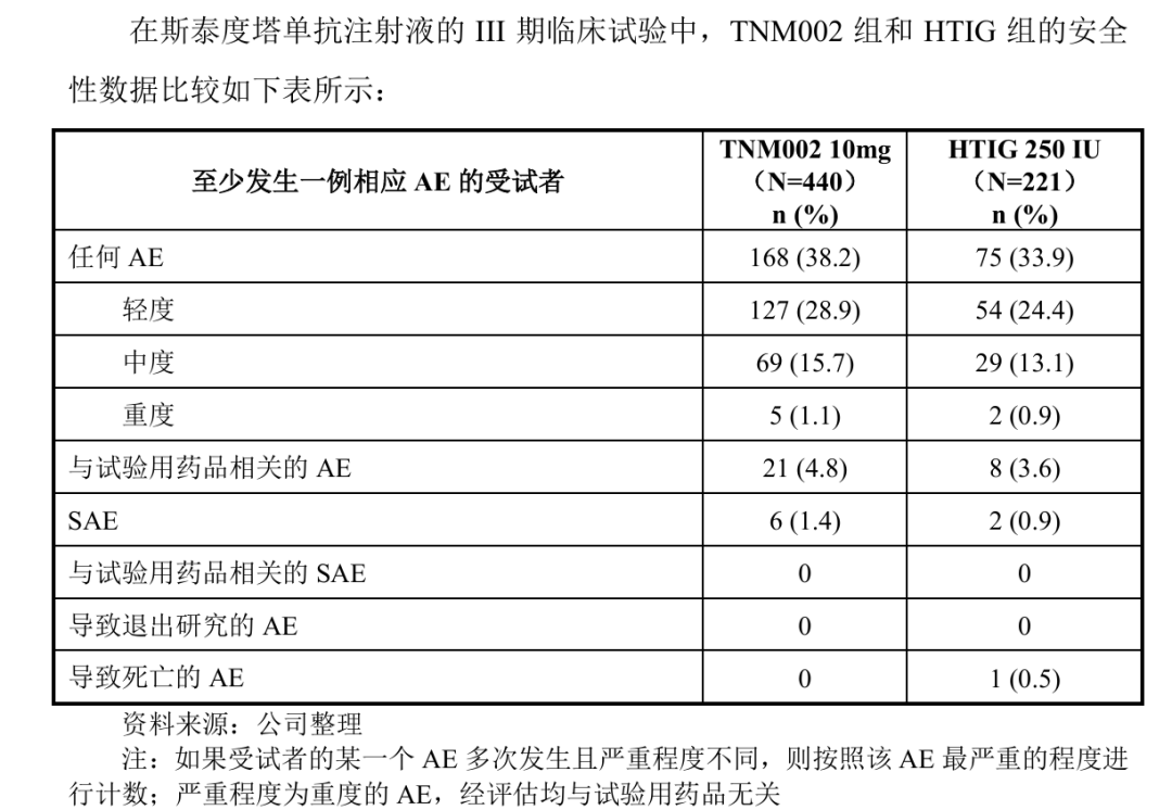值得注意的是,在科创板IPO审核过程中,斯泰度塔单抗与破伤风人免疫球蛋白(HTIG)头对头III期临床试验中,安全性数据成为监管问询的重点内容。