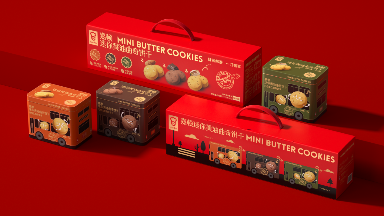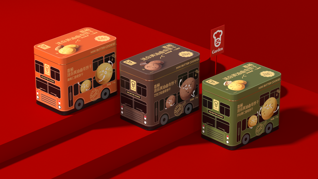 在产品设计上,三款巴士造型迷你小罐兼具装饰性与社交属性,三重口味打破单一口味局限,满足不同消费偏好。在包装设计上,复古红搭配趣味巴士插画的礼盒自带喜庆质感,内部三色小罐对应三种口味,“9片一小包、5包一罐”的独立分装形式,既防潮防碎,又方便携带分享,成为契合社交平台传播的“社交货币”。