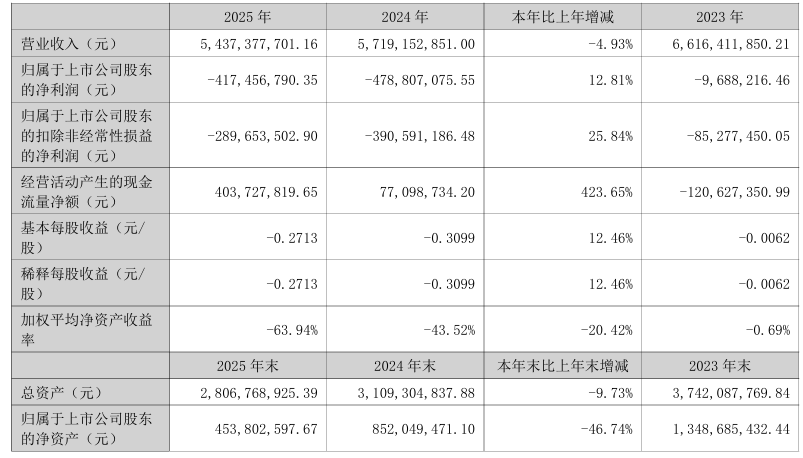 近日,跨境通(股票代码:002640)发布2025年年度报告。年报显示,跨境通2025年实现营业收入54.37亿元;归母净利润为负4.17亿元,较上年减亏12.81%;扣非归母净利润为负2.90亿元,同比减亏25.84%。