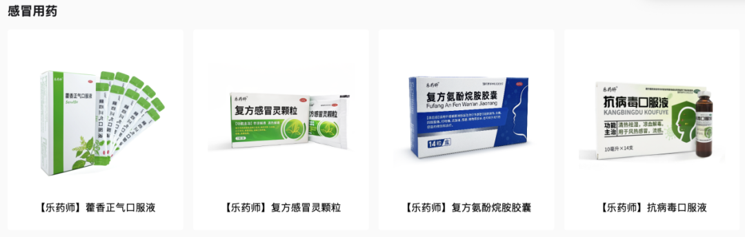 以“乐药师”矩阵为例,已经针对藿香正气口服液等感冒用药,布洛芬、塞来昔布等止痛类药物,以及日常消费者常见病的15类用药场景进行覆盖。