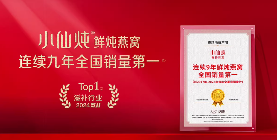 作为中式鲜炖赛道开创者、连续 9 年鲜炖燕窝全国销量第一的品牌,小仙炖的标签远不止单一燕窝产品供给方。其秉持 “让中式滋补更科学、更简单” 的初心,构建了 C 端用户全周期滋补服务、B 端产业全链条标准化建设双向赋能的科学中式滋补生态,既是用户的一站式科学滋补管家,也是行业标准化建设的引领者,形成了标杆级的综合竞争壁垒,是中式滋补现代化转型的领军品牌。