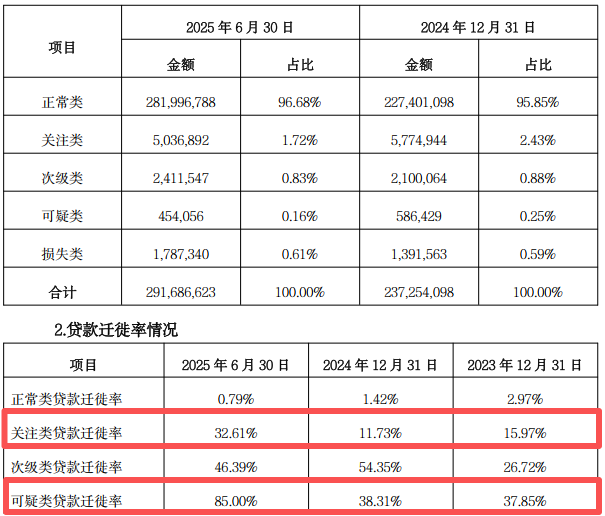 2025年半年报显示,西安银行的关注类贷款迁徙率,从2024年末的11.73%增至32.61%;可疑类贷款迁徙率从2024年的38.31%猛增至85%,反映该行贷款转化为不良损失的风险较大。
