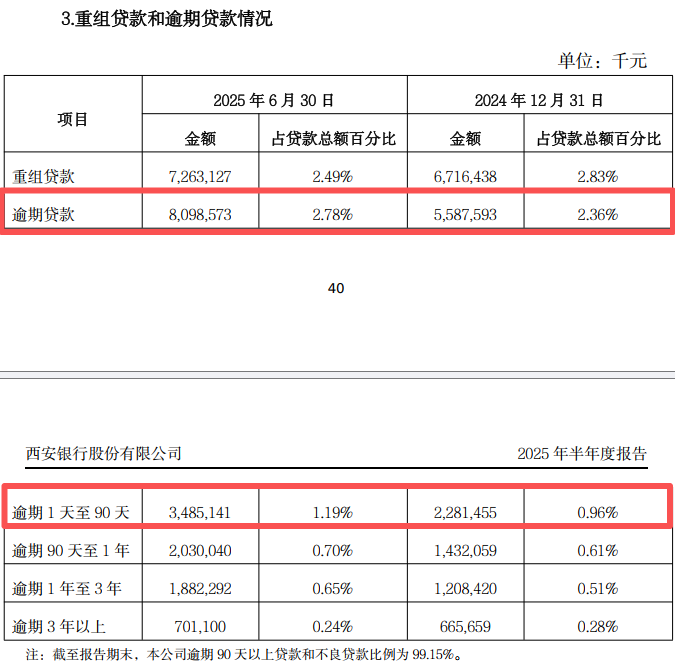 图 / 西安银行2025年上半年逾期贷款情况(来源:西安银行2025半年报)