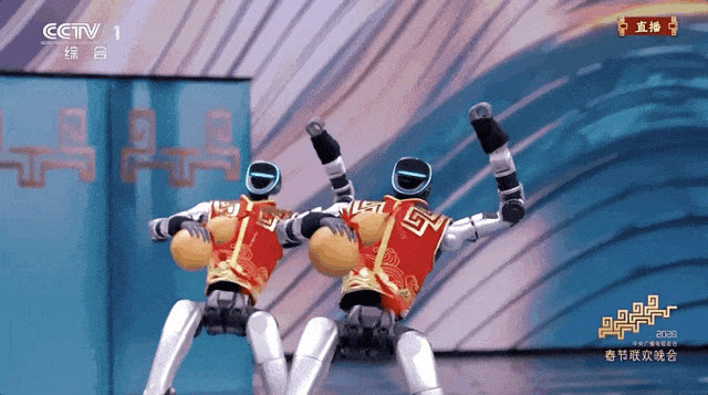 马年春晚上机器人表演武术。
