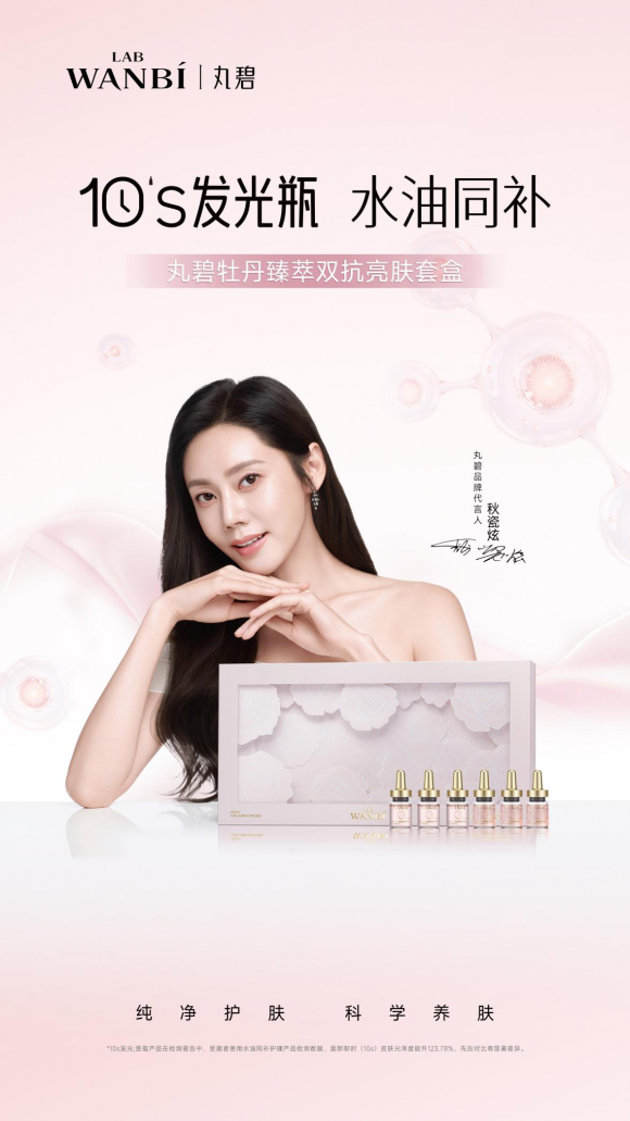 深耕洛阳,放眼世界。丸碧自创立以来,始终秉持“纯净护肤,科学养肤”的品牌理念,根植于洛阳悠久的牡丹种植文化,以拥有1500年栽培历史的凤丹白牡丹为核心原料,依托科学复配、高浓萃取及三项专利技术:牡丹籽油精炼专利(专利号:ZL.2012 1 0330184.9)、丹泽亮肤专利(专利号:ZL200910048788.2)、紫雪参养油专利(专利号:ZL2017 1 1195829.1),携手医研共创,匠心推出“10S发光瓶套盒*”,打造“水油同补”科学护肤新方式。其中,牡丹御颜精萃油与牡丹亮颜微囊精华双效协同,搭配前沿美肤仪器,以植萃之力,护航护肤体验新风尚。