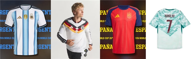 为满足球迷身着特定球衣看球赛的需求,京东精选多款阿迪达斯正版球员版球衣。阿根廷国家队世界杯梅西同款球衣,有三冠星纹与卫冕冠军盾牌印花,后颈1893字样致敬队史经典时刻;西班牙国家队世界杯亚马尔同款球衣,国旗配色鲜明醒目,后颈印有西班牙字样;德国国家队世界杯维尔茨同款球衣,延续经典主场风格,采用轻感针织提花面料,兼具潮流质感与运动性能。此外,彪马葡萄牙队C罗同款球衣同样深得球迷喜爱,白底搭配大面积蓝绿色波浪纹样,面料吸湿排汗,观赛全程能保持干爽。