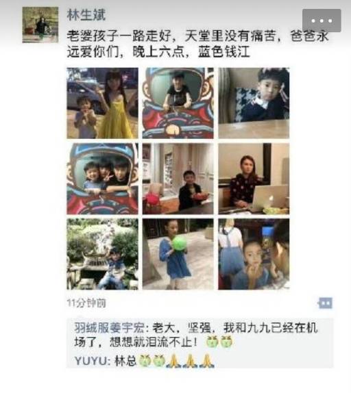 做服装生意的男主人林某当时出差在外躲过一劫,他发的这条朋友圈,让人看了好心痛。