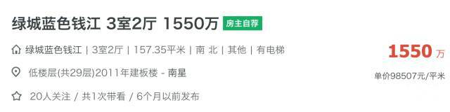 要知道,蓝色钱江小区可是杭州的豪宅,房产网站介绍,该小区均价高达6.7万/平方米,近期一套二手房的成交价都在千万元以上。