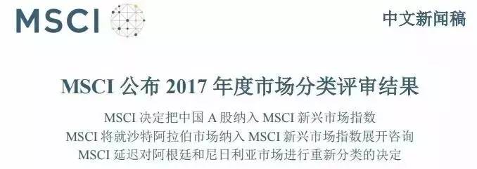 不管是萌新(蠢萌的新韭菜)还是老司机,现在都坚定的认为这是一个利好消息。MSCI 作为一家权威的股权、固定资产、对冲基金、股票市场指数的供应商,是整个全球资本市场的定海神针。他在资本市场的地位,差不多是电影界的奥斯卡,音乐界的格莱美,文化界的春晚。