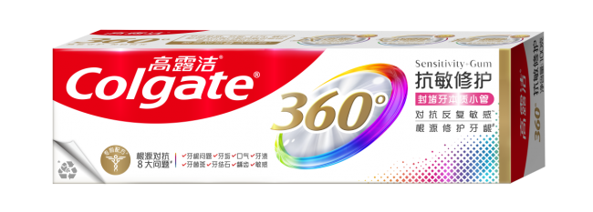 高露洁360抗敏修护牙膏依托独家专利技术(专利号CN103260591B/CN104721063B),专为有牙齿牙龈敏感、多重口腔问题困扰的人群打造,实现多效合一的专业口腔修护,4周根源改善牙齿敏感、牙龈红肿、出血等多重口腔问题。