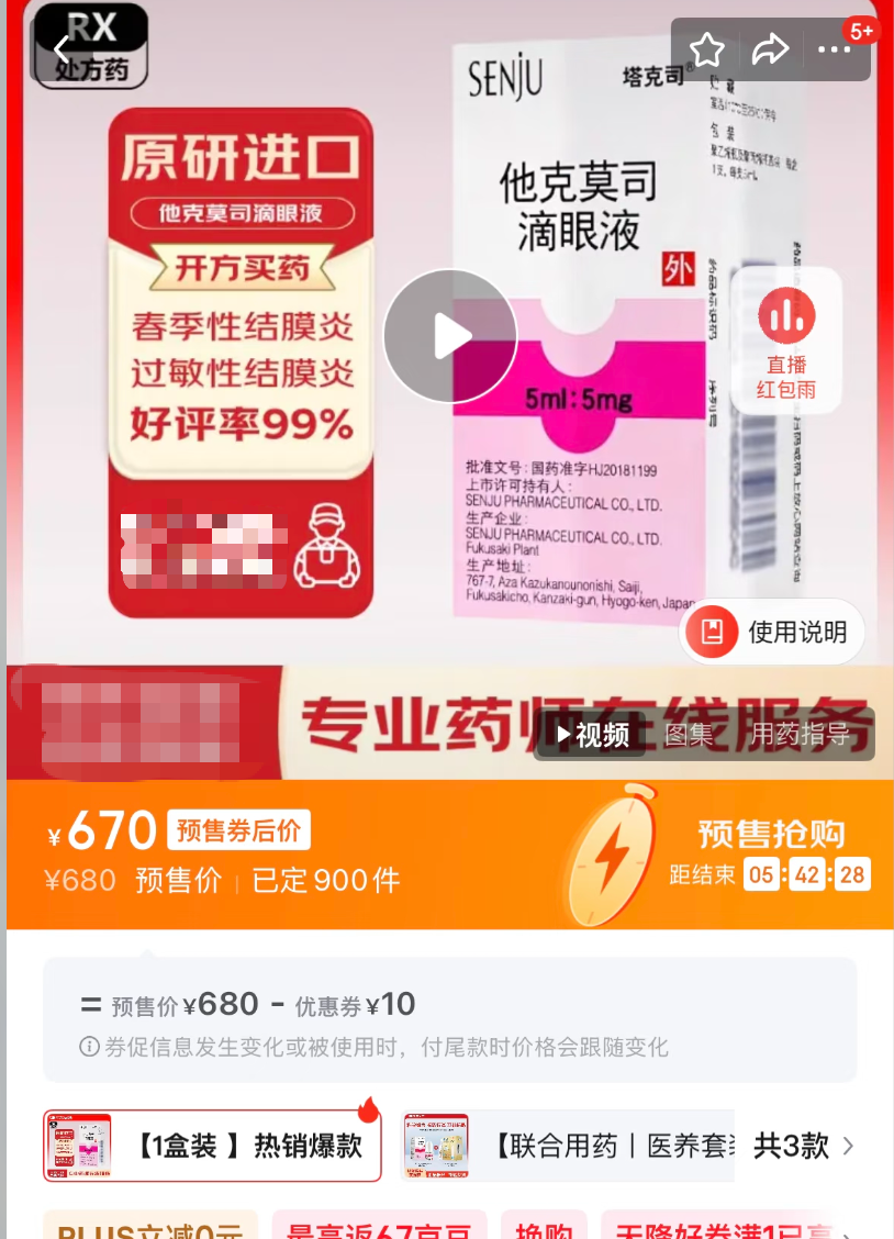 4月8日,多个社交媒体平台出现关于“779元滴眼液暴涨至3382元”的热议。据相关报道,广东刘女士的孩子因角膜移植术后,需长期使用他克莫司滴眼液,但最近复查开药时,医院表示缺货。该女士无奈自行网购,却发现院内700多一支的滴眼液,在电商平台的价格涨到1700-3000元不等。