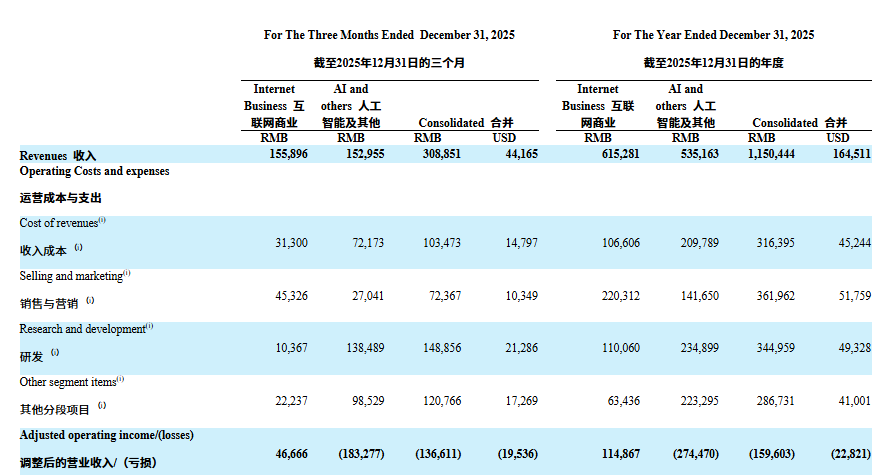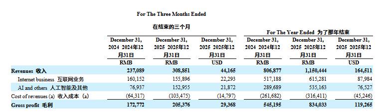 这意味着,AI业务短期不仅无法实现自我造血,还要继续依靠互联网业务的现金流持续输血。