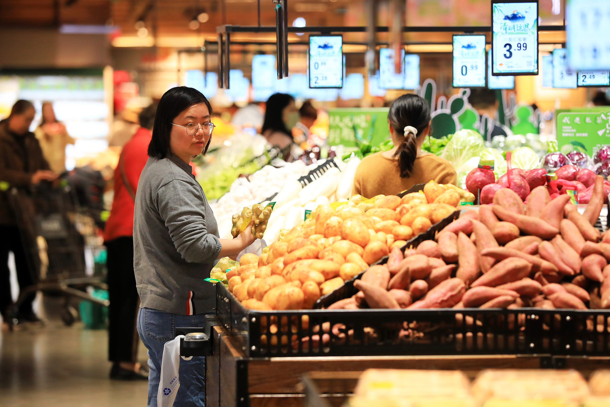 统计数据显示,3月食品价格同比上涨0.3%,涨幅较2月回落1.4个百分点。食品价格中,猪肉价格同比大幅下降11.5%,上月为上涨1.7%。食品中,鲜菜、牛肉、羊肉和鲜果价格涨幅在4.0%—7.8%之间,涨幅比上月均有回落,合计影响CPI同比上涨约0.24个百分点;鸡蛋价格下降3.3%,降幅比上月有所扩大。