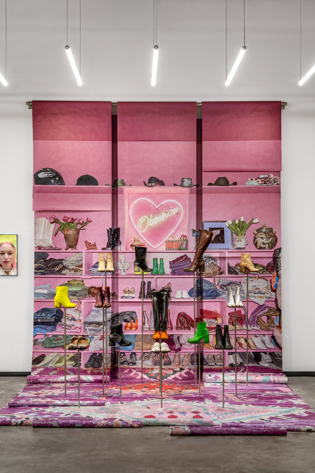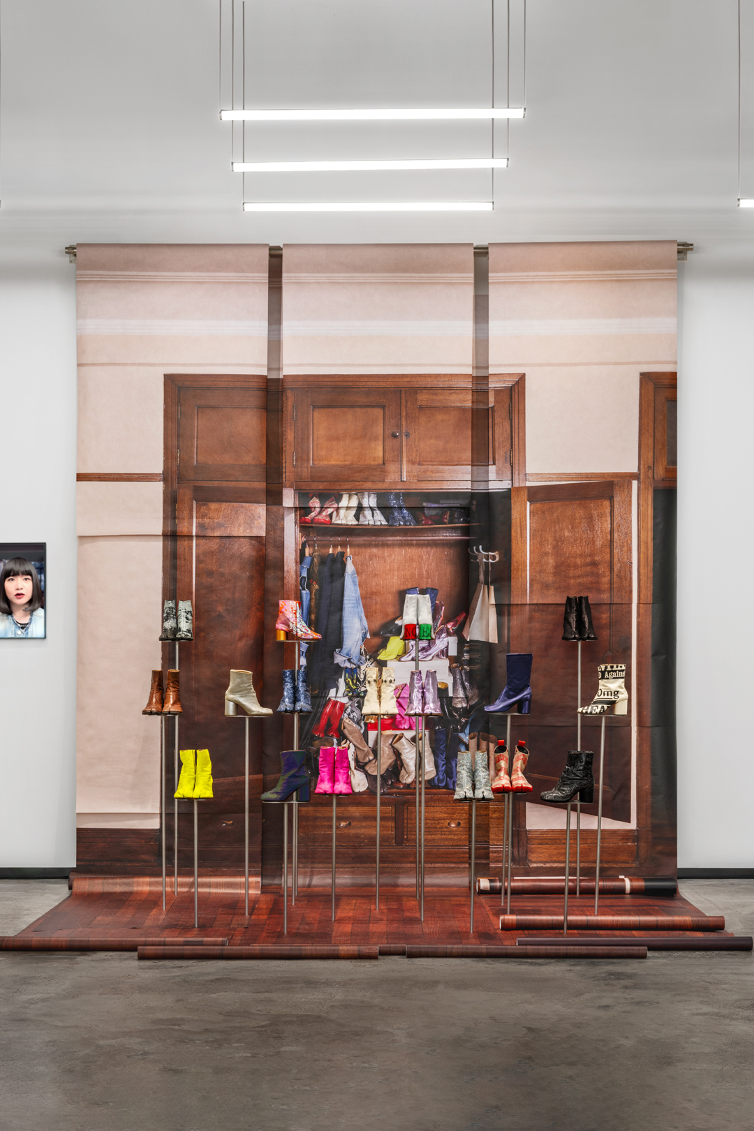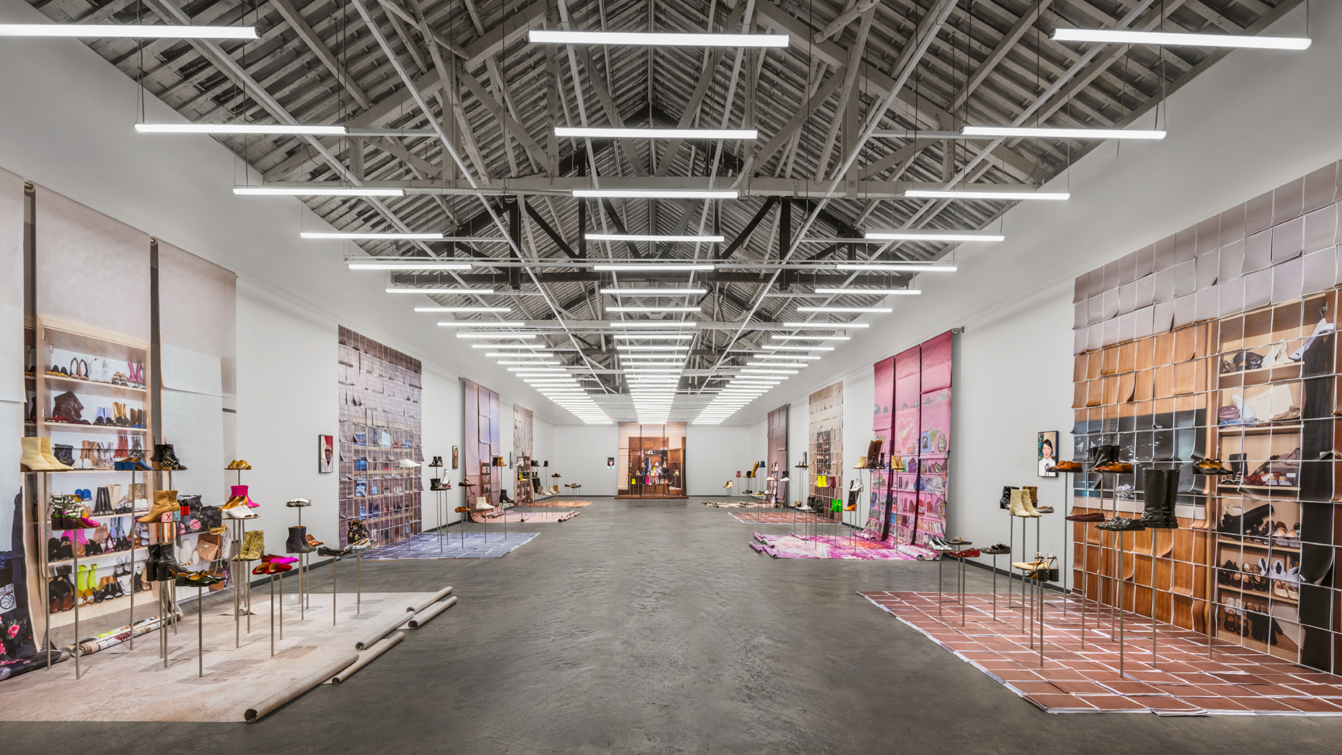 展览内设有 Maison Margiela Café,为访客提供休憩交流的空间。同时这里展出了一系列品牌档案中的典藏 Tabi 作品,从1989春夏系列的初代靴款到近期的全新演绎,包括 Artisanal 系列中的 Tabi Claw 爪形鞋。Tabi 的经典设计在各个系列中不断被重新诠释,呈现出新的造型与材质,成为品牌进行创意实验的画布。