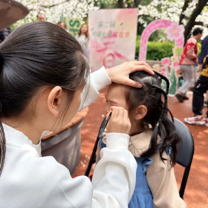 颜值担当:脸部彩绘区人气爆棚,樱花、蝴蝶跃然脸颊,成为最独特的春日装扮;