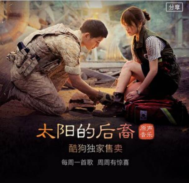 这一系列的成功其实还要得益于2016年3月,一度席卷大陆的韩剧《太阳的后裔》ost独家上线酷狗音乐2个月,卖出1200万元销售额。酷狗开创的数字专辑营销新玩法,如:粉丝打擂、粉丝铭牌等等鼓励粉丝为正版音乐付费的方式,也为其他音乐平台带来了灵感。这些成功,在实体唱片时代是很难想象的,加上那时的版权管理不够完善,影视音乐的实际收益其实与它们的市场价值不成正比。