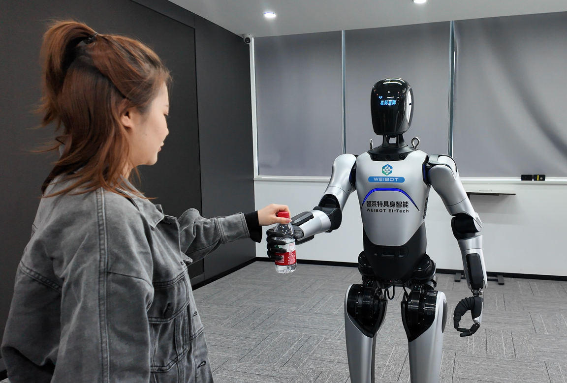 目前,在“星际V”与真实人类世界感知、交融的过程中,它已具备在社会生活各个领域适用的能力。“在应用方面,这款人形机器人已开展展厅讲解、商超导览、店铺营销、业务咨询、前台接待、教育科研等服务。”高波表示,未来,公司将不断突破人机协同边界,以具身智能技术赋能区域经济高质量发展,为催生新质生产力贡献智慧与力量。