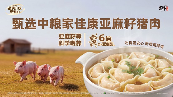 在推出新品的同时,吉祥馄饨亦同步推进经典产品的品质升级。品牌宣布,全国门店经典馄饨产品所使用的猪肉原料已于去年年底全部升级,甄选中粮家佳康亚麻籽猪。该品种以科学配比的亚麻籽饲喂,其脂肪中不饱和脂肪酸含量更高,肉质更加细腻、风味更为纯净。此次升级是吉祥馄饨坚守“七分原料,三分工”理念的具体体现,即一碗好馄饨,七成靠真材实料,三成靠匠心手艺。