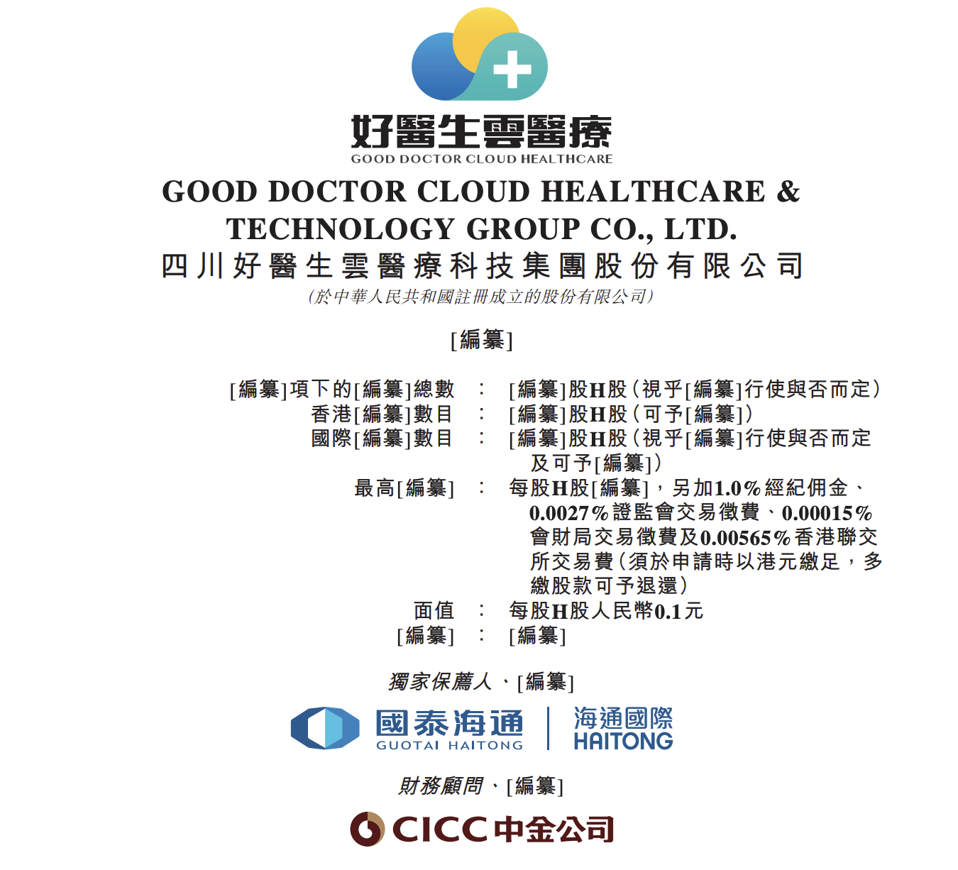 港交所文件显示,四川好医生云医疗科技集团股份有限公司向港交所提交上市申请书。独家保荐人为国泰海通。