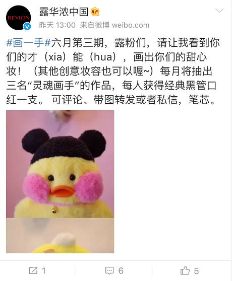 在离开中国市场的两年时间里,露华浓官方微博也一直在更新,保持着每月3-4条的更新频率,主要发布一些产品信息,似乎在提醒中国消费者不要忘了它。天猫旗舰店上线后,露华浓也开始重视与消费者之间的沟通,基本上保持每日一更,并多是一些抽奖互动的微博内容。