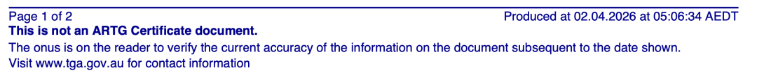 值得注意的是,底部一行蓝色字体的标准免责声明“This is not an ARTG Certificate document”(这不是 ARTG 证书文件)。