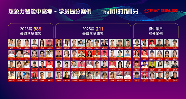 2025年中高考,众多学子在想象力智能中高考的帮助下,突破高分瓶颈,成功入读985、211大学,圆了自己的名校梦想。