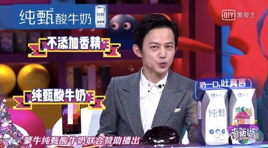 大叔认为这是奇葩说最重要的一个植入手段,纯甄酸牛奶在节目中的口播是“奶后吐真言”。