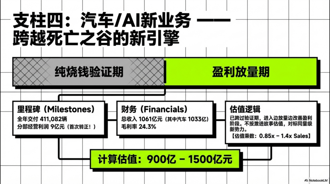 4)汽车 / AI 新业务:约 900 亿–1500 亿元