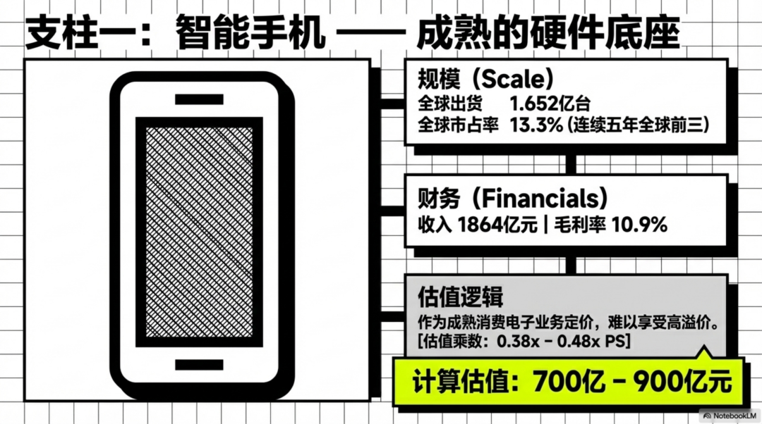 1)手机业务:约 700 亿–900 亿元