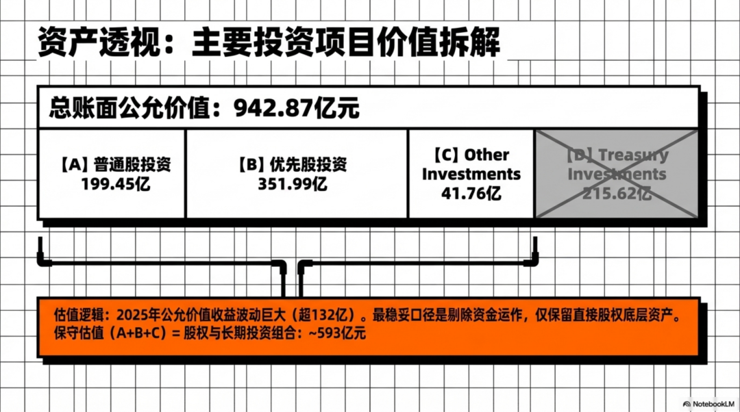 另外,2025 年这些公允价值投资带来的损益贡献很大:普通股投资公允价值收益 63.16 亿元,优先股投资 60.32 亿元,Treasury 与其他投资 8.92 亿元。