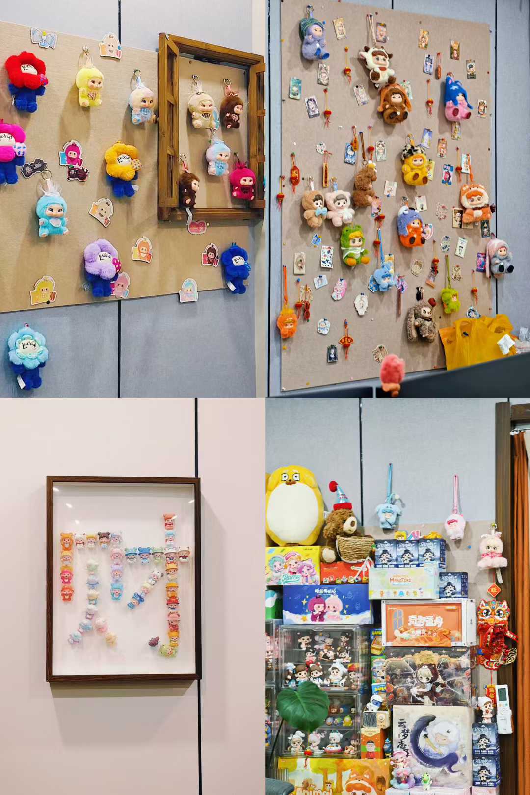 有一次团队的内部会议上,唐丽一口气买回来12个潮玩,供参会人员研究,全是Labubu带火的搪胶毛绒形态。同事们盯着摆在眼前的玩具,毛绒做的身子全都一模一样,只有头部的微小差异,没人分得清到底哪个不是Labubu。