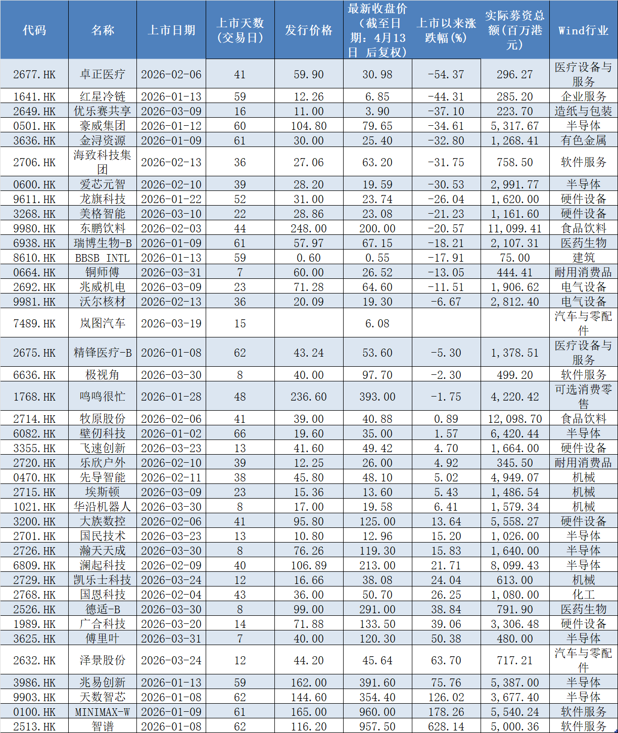 2026年初,港股新股市场一度延续了2025年的火热态势。作为去年全球IPO募资规模第一的市场,港股在新年开局阶段依旧保持着较高的热度,前两月上市新股整体表现平稳,甚至一度出现连续多只新股首日收涨的“零破发”局面。市场情绪乐观,打新资金踊跃,不少投资者仍将港股IPO视为相对稳健的套利机会。