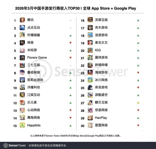 4月8日,知名数据平台Sensor Tower发布2026年3月中国手游厂商收入榜,2026年3月共38个中国厂商入围全球手游发行商收入榜TOP100,合计吸金21.1亿美元,占本期全球TOP100手游发行商收入39.2%。中国厂商在全球市场的整体竞争力持续增强。值得注意的是,沐瞳凭借旗下长青游戏强势跻身中国手游发行收入榜前十,其主力产品《Mobile Legends: Bang Bang》位列中国手游收入第六位。Sensor Tower披露的数据显示,自2017年以来,《Mobile Legends: Bang Bang》已连续9年稳居东南亚市场策略手游下载榜与收入榜冠军,充分展现了其在长期运营与区域市场深耕上的实力。