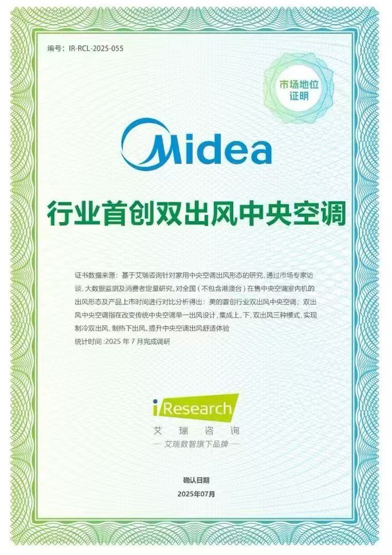 美的美享家双出风风管机的诞生,是基于用户需求为核心深度思考,以双出风口形态创新和自主研发硬核技术实力,不仅推动行业从“单一功能”向“全维度综合体验”的价值跨越,更彰显美的在行业的领先地位,以技术驱动行业持续突破,让舒适空气真正普惠千家万户。