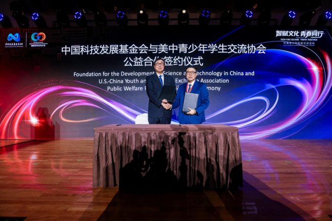 2026年4月8日,恰逢中美“乒乓外交”55周年之际,中国科技发展基金会特别邀请乒乓外交亲历者代表团及林肯中学青少年代表共同参加“智赋文化·青春同行”中美青少年科技交流活动。为了推动中美青少年科技人文交流走深向实,搭建长效合作平台,中国科技发展基金会与美中青少年学生交流协会公益合作项目正式签约,同期发布“科技文化传播公益项目”,旨在促进科技与文化深度融合。
