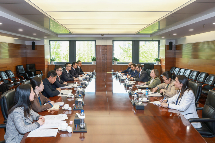 4月13日,商务部副部长兼国际贸易谈判副代表凌激会见陪同西班牙首相桑切斯访华的西经济、贸易与企业部贸易国务秘书洛佩兹,双方就中西经贸关系等交换意见。