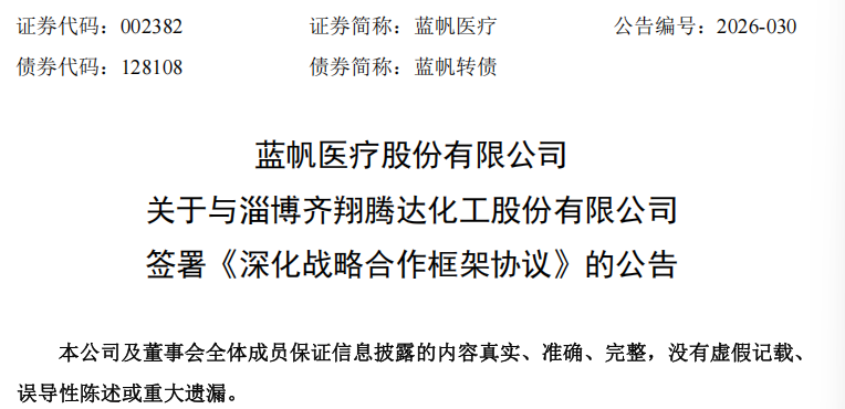 4月14日晚间,淄博两家上市公司齐翔腾达(002408)与蓝帆医疗(002382)同步发布公告,宣布与对方签署《深化战略合作框架协议》。