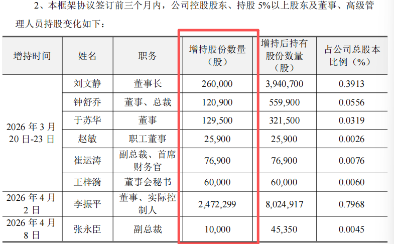 此外,公告提到,协议签署前,蓝帆医疗高管团队刚刚完成一轮增持。2026年3月20日至4月8日,董事长刘文静增持26万股,董事、总裁钟舒乔增持12.09万股,实际控制人李振平增持247.23万股。