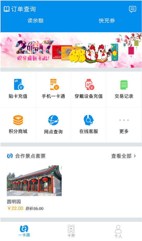 在“北京一卡通”应用上,已有的功能包括充值、查看交易记录、去积分商城换购礼品或充值卡、购买合作景区的套票(目前只有圆明园景区),以及给穿戴设备充值,例如智能手环。2015年10月,北京市政交通一卡通就与握奇推出“握奇手环”,支持公交地铁、商超便利店等的支付。“北京地铁”微博文章介绍,手机一卡通自2013年推出至今,北京已有近百万市民开通。不过这还是首次开始用手机支付地铁乘坐费用。