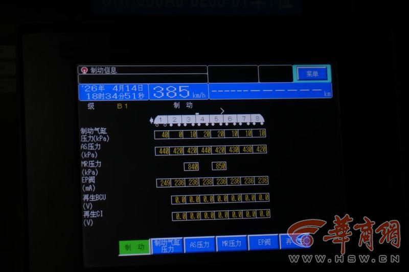 “385公里时速意味着列车每秒行驶超100米,控车难度极高。此次测试采用CRH380AJ-0203型综合检测列车,运行过程中ATP安全防护设备隔离,速度完全由司机人工精准操控,制动时机误差控制在1秒以内。列车搭载的各类检测设备实时采集轨道几何、弓网状态、信号传输、噪声振动等关键数据,为线路评估提供详实依据。”西安铁路局西安机务段指导司机姚远说。