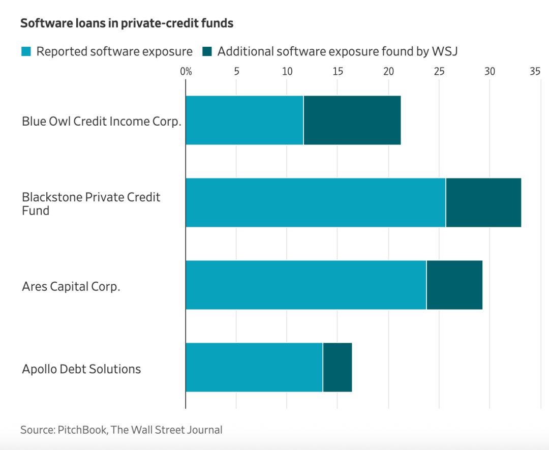 私募信贷一级数据平台9fin的统计称,在整个私募信贷市场中,软件/SaaS公司约占20%-25%的份额,已经是单一最大行业敞口。