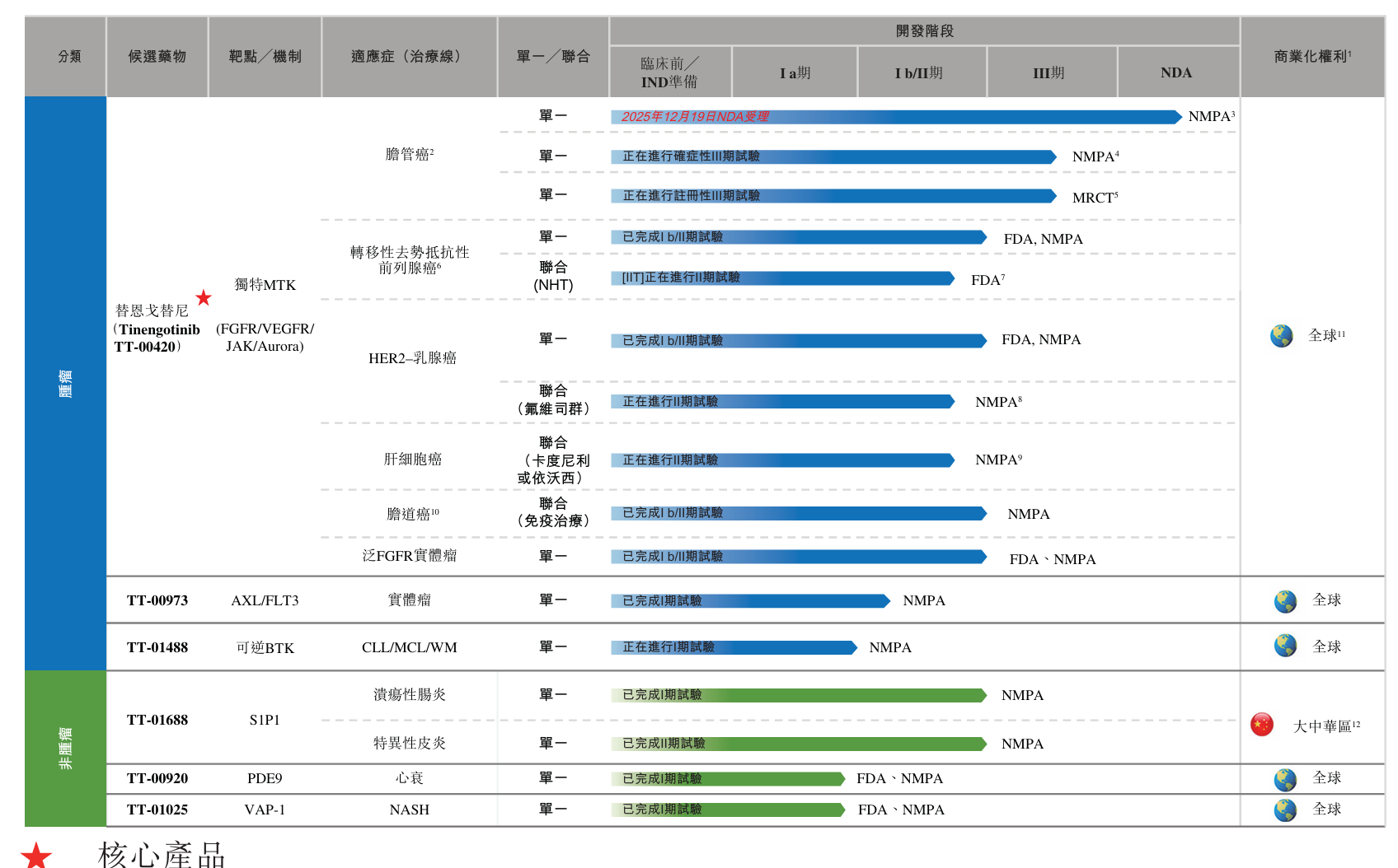 2025年12月,替恩戈替尼用于胆管癌的上市申请已获国家药监局受理,该药这一适应证亦被国家药监局纳入优先审评品种名单,公司预计将于年内获批。